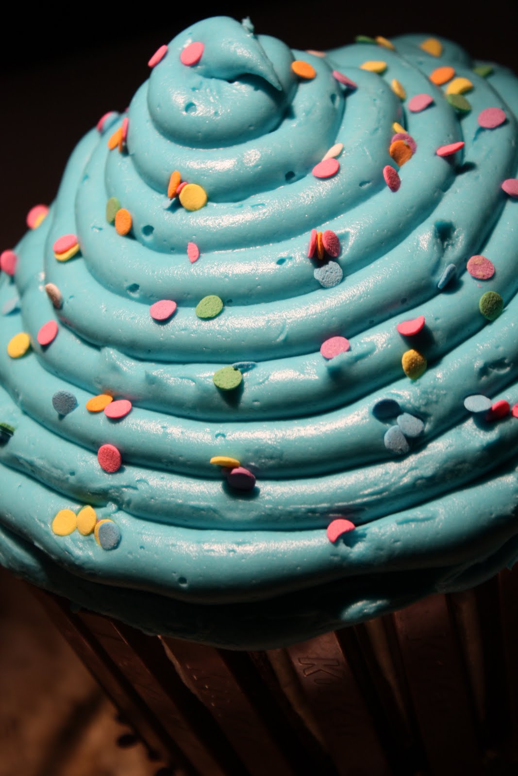 I won't post a recipe because I'm a big Betty Crocker advocate and I'm pretty sure I don't need to tell you guys how to add egg and oil to cake mix and bake for 45 minutes! The icing was a cream-cheese icing (1 block of cream cheese, 1/2 cup of butter, whisked in the stand mixer with 4 cups of icing sugar and food coloring).